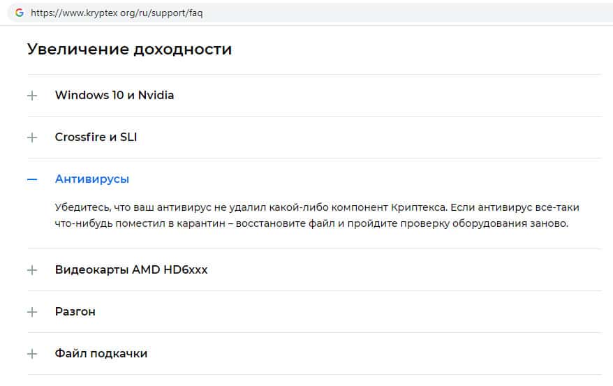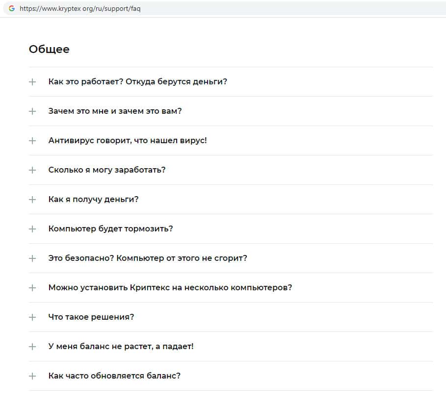 - Якобы часто задаваемые вопросы на сайте мошеннической организации Kryptex Org
