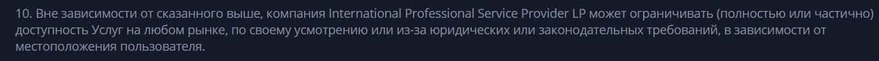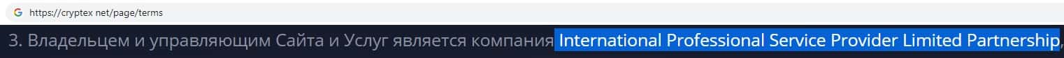 Юридическое лицо International Professional Service Provider Limited Partnership владеет мошенническим сервисом cryptex net, компании Криптекс Нет.