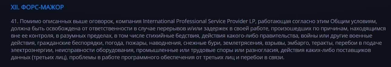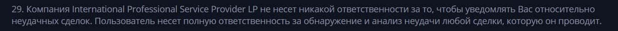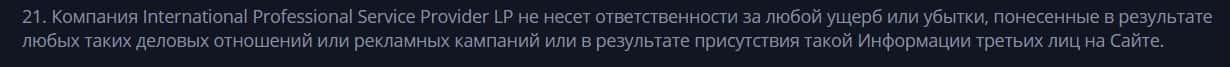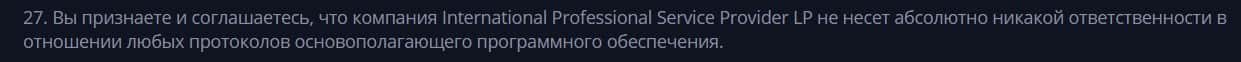 Согласно тому, что аферисты пишут в соглашении, скам-компания Cryptex Net не несет никакой ответственности за не полученную прибыль клиентом, а так же за возможные убытки.