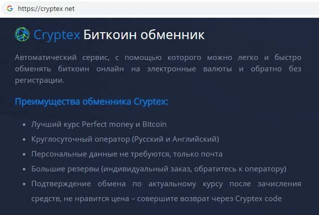 - Обменник на сайте Криптекс Нет оставляет желать лучшего