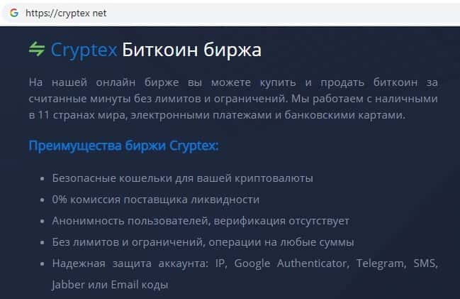 Информация о криптовалютной бирже Криптекс Нет