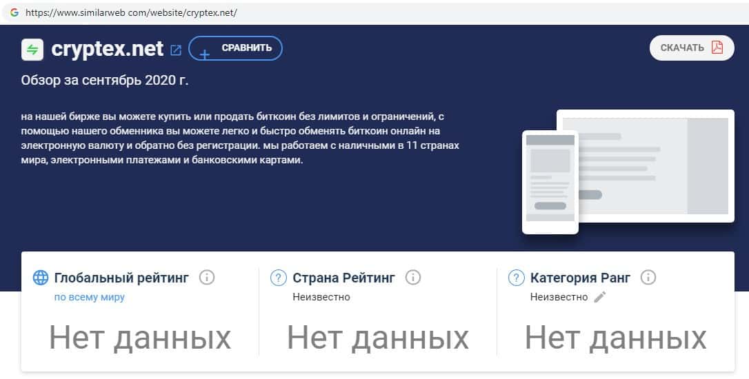 При проверке источников бренда по странам компании Cryptex Net на сайте similarweb com, информация отсутствует, что является признаком фейкового интернет-лохотрона.