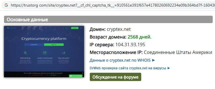 - Возраст домена криптовалютной биржи Cryptex Net