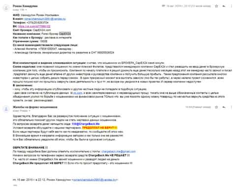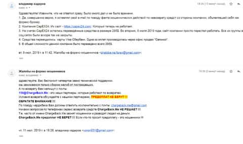 Далее предлагаем ознакомится с перечнем жалоб людей, которые были обворованы на уже соскамившейся интернет-площадке Капекс 24. Но уже сегодня, во всю действуют приемники Capex24, мошенники Crypterum. Поэтому не стоит связываться с такими шарашкиными конторами, число обманутых растет ежедневно.
