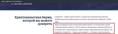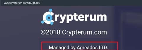 Бренд Криптерум принадлежит юридическому лицу Agreados LTD. Об этом можно узнать на сайте криптовалютной биржи Crypterum. Ниже приводим скрин с данной веб-площадки.