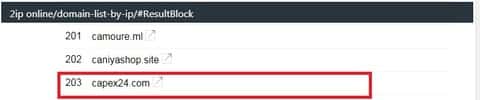На IP, где находятся жулики Криптерум представлен и соскамившийся сайт другой мошеннической организации, а именно - конторы Капекс24.