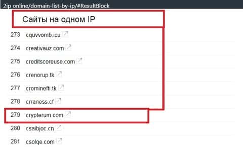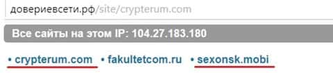 Так как мошенники Криптерум на бесплатном клаудфаере, то и вынуждены находится по соседству с разными сомнительными сайтами, включая огромное количество онлайн-казино и веб-сервисы с услугами интимного характера.