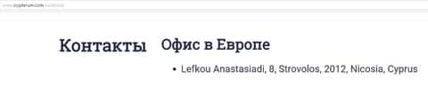 Далее предлагаем скрин с сайта мошеннического проекта Crypterum, где опубликован тот же адрес на Кипре, что и на сайте брокера Форекс БКС.