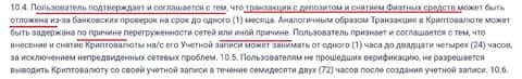 И в завершение рассмотрения данного важного вопроса, касающегося регулирования взаимоотношений между конторой Криптерум и ее клиентами, предлагаю увидеть пункт 10.4 жульнического договора крипто-лохотрона Crypterum. Эта норма позволяет аферистам не выводить клиентские деньги.