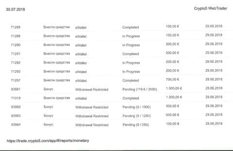 - Детальная жалоба на Крипто 5 - клиентку лишили 9600 евро