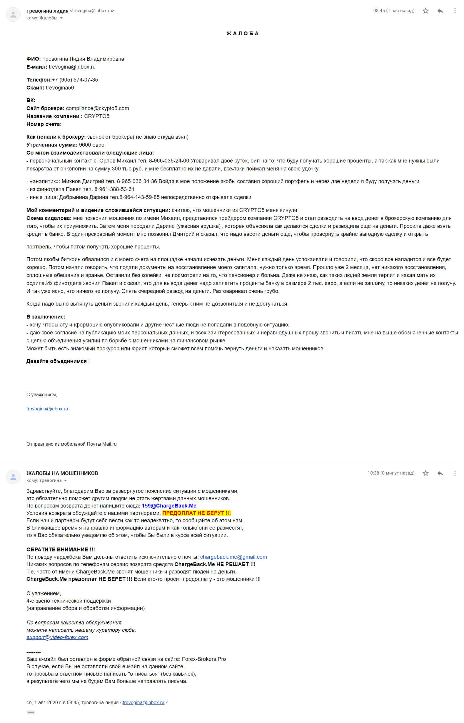 - Жалоба на мошеннические конторы Крипто 5 и 10Брокерс