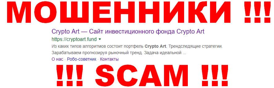 CryptoArt – мошенническая организация. Кидалы позиционируют себя, как не сложно догадаться, великими воротилами криптовалют. На деле же это очередной прикрытие мошеннической деятельности, заключающейся в том, что всех вкладчиков аферисты кинут на деньги. Держитесь от жуликов Крипто Арт подальше!