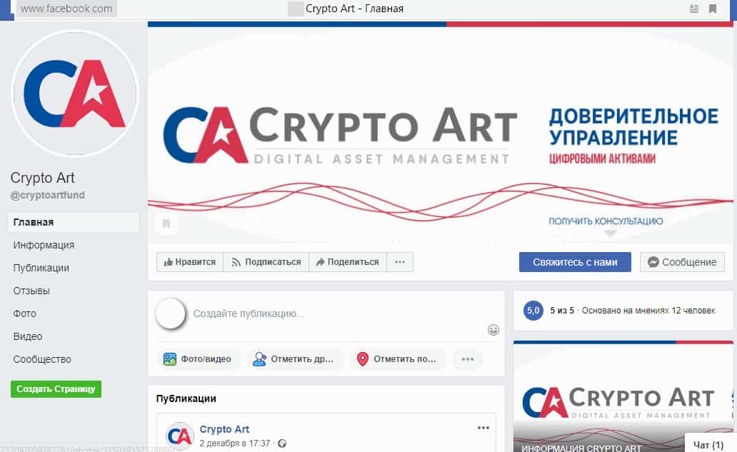 Шулера Крипто Арт, помимо своего веб-сайта, как инструмент пропаганды также используют социальные сети. Это очень удобный способ, так как сегодня многих от Facebook или Telegram за уши не оттащишь. Мошенники CryptoArt нашли этому применение и разводят людей в социальных сетях.