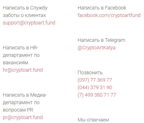 - Контактные данные, представленные на сайте кидал CryptoArt