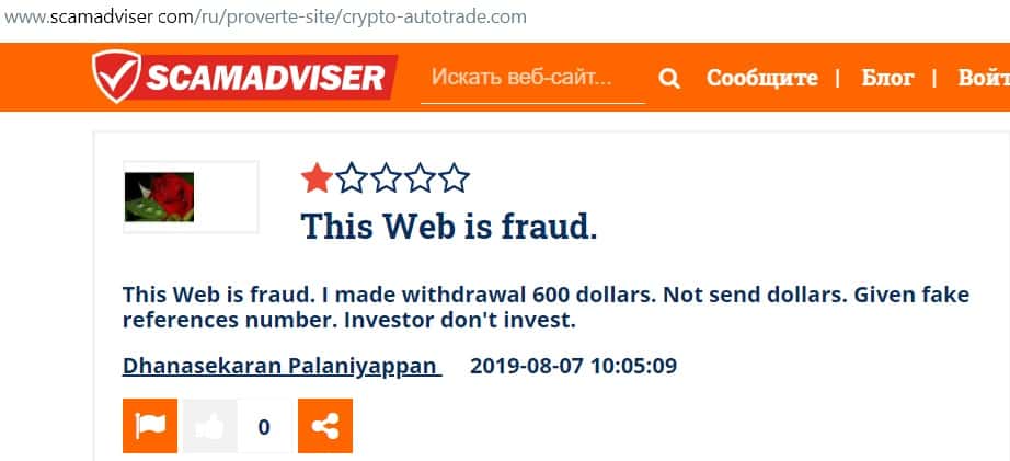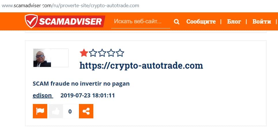 - Отзыв обманутого клиента Крипто Авто Трейд с сайта Scamadviser