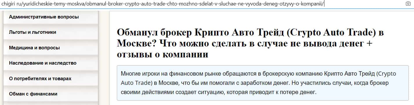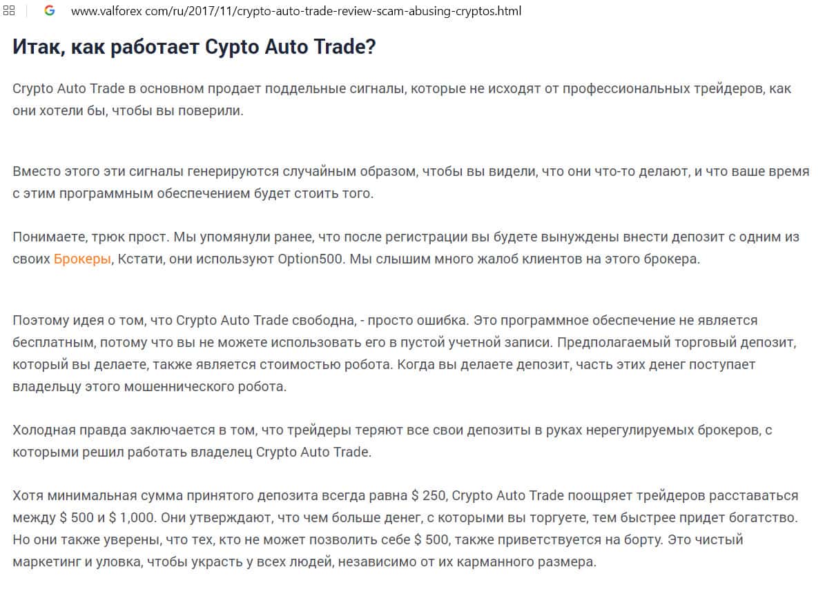 - Негативный отзыв о ресурсе-мошеннике Crypto Auto Trade