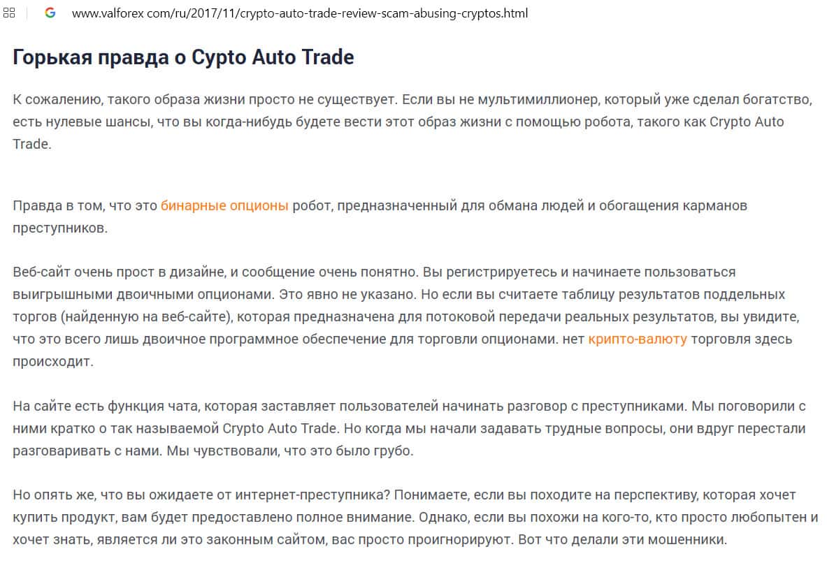 Сайт Valforex раскрывает мошеннический характер площадки Crypto Auto Trade