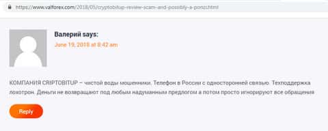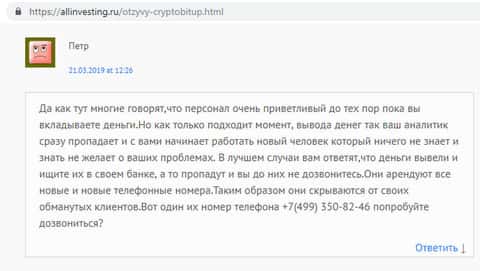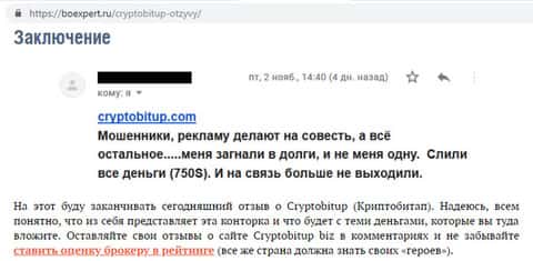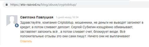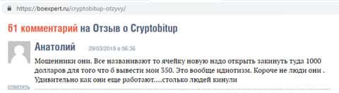 - Комментарий бывшего клиента CryptoBit, оставшегося при нулях