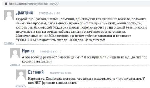 Актуальные комментарии трейдеров, прогоревших на Крипто Бит