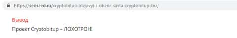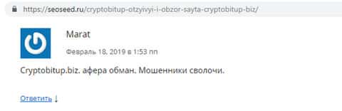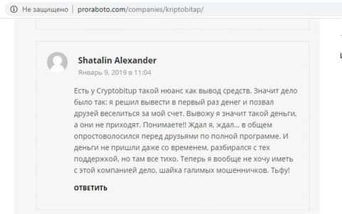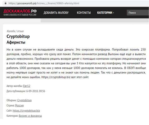 Опубликованный на доскажалоб рф негативный отзыв на аферистов Крипто Бит