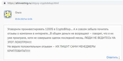 - Актуальные комментарии трейдеров, прогоревших на Крипто Бит