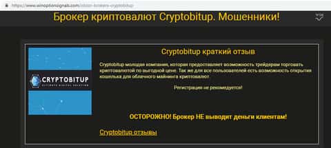 На сайте winoptionsignals com в CryptoBit также распознали мошенников и аферистов. Весь их сайт и информация, которая там есть – лишь пыль для отвода глаз тех, кто не соображает в трейдинге. Нельзя иметь никаких дел с этим лохотроном.