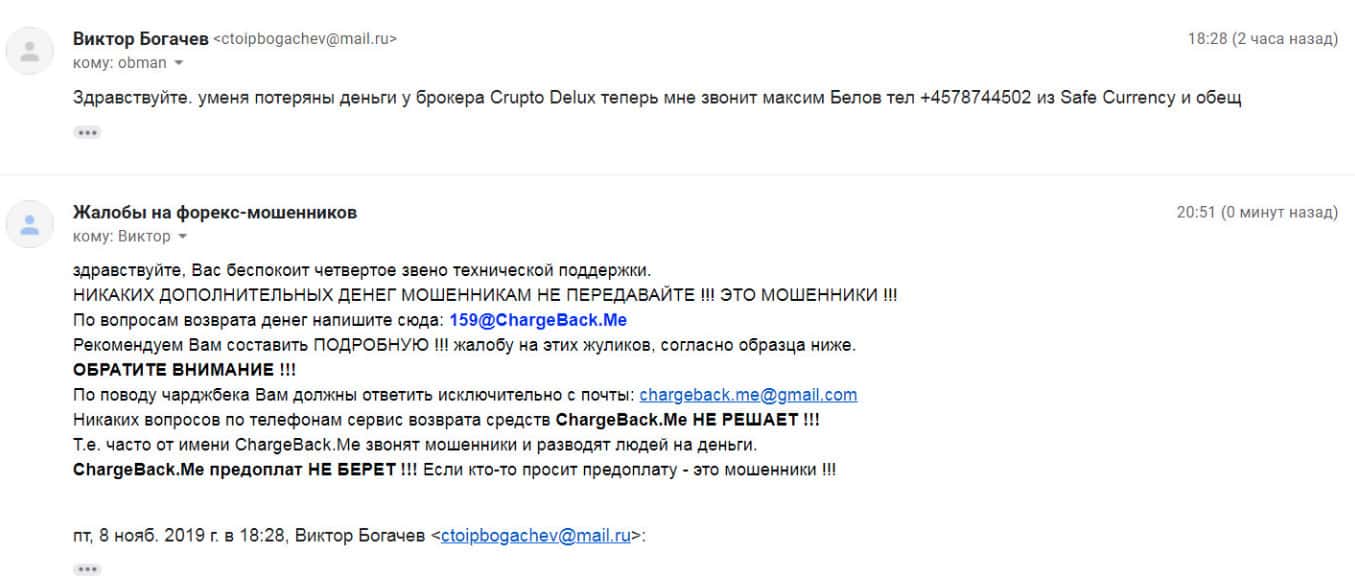 В этом случае человек в подробностях описал, как проходил развод в конторе Крипто Делюкс и кто был причастен ко всему этому. В данной афере жертва потеряла около 2000 долларов, так как доверился уговорам аналитика. Как теперь возвращать деньги обратно - он понятия не имеет.