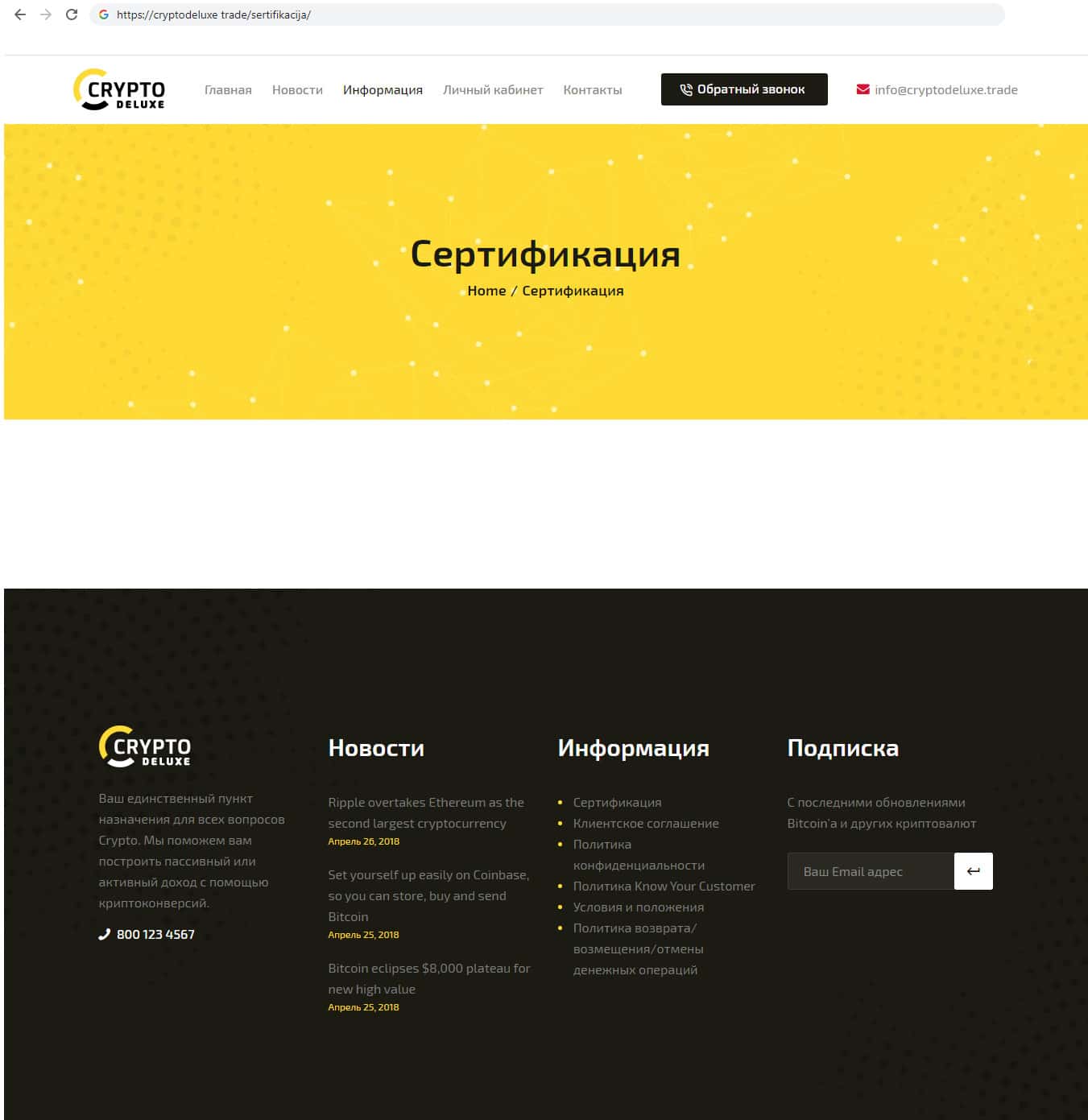 - Контактная информация разводил Крипто Делюкс