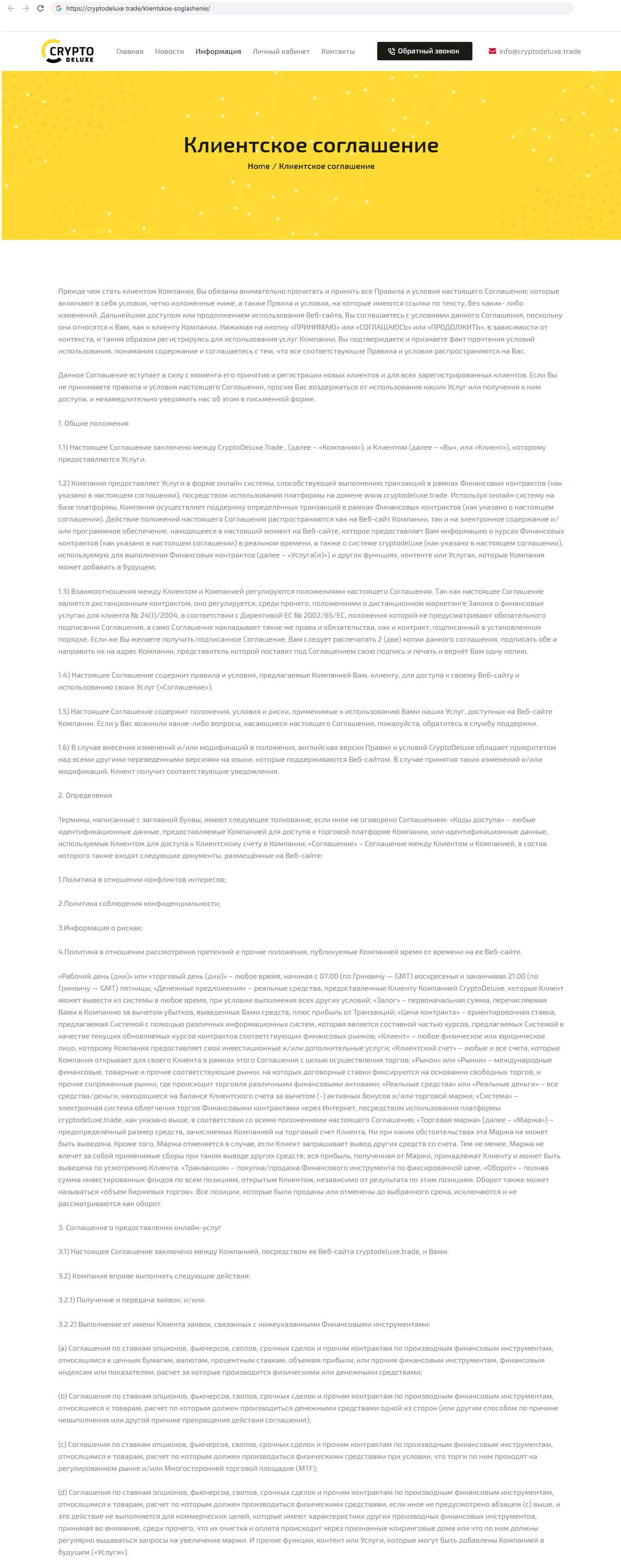 - Клиентское соглашение лохотрона CryptoDeluxe