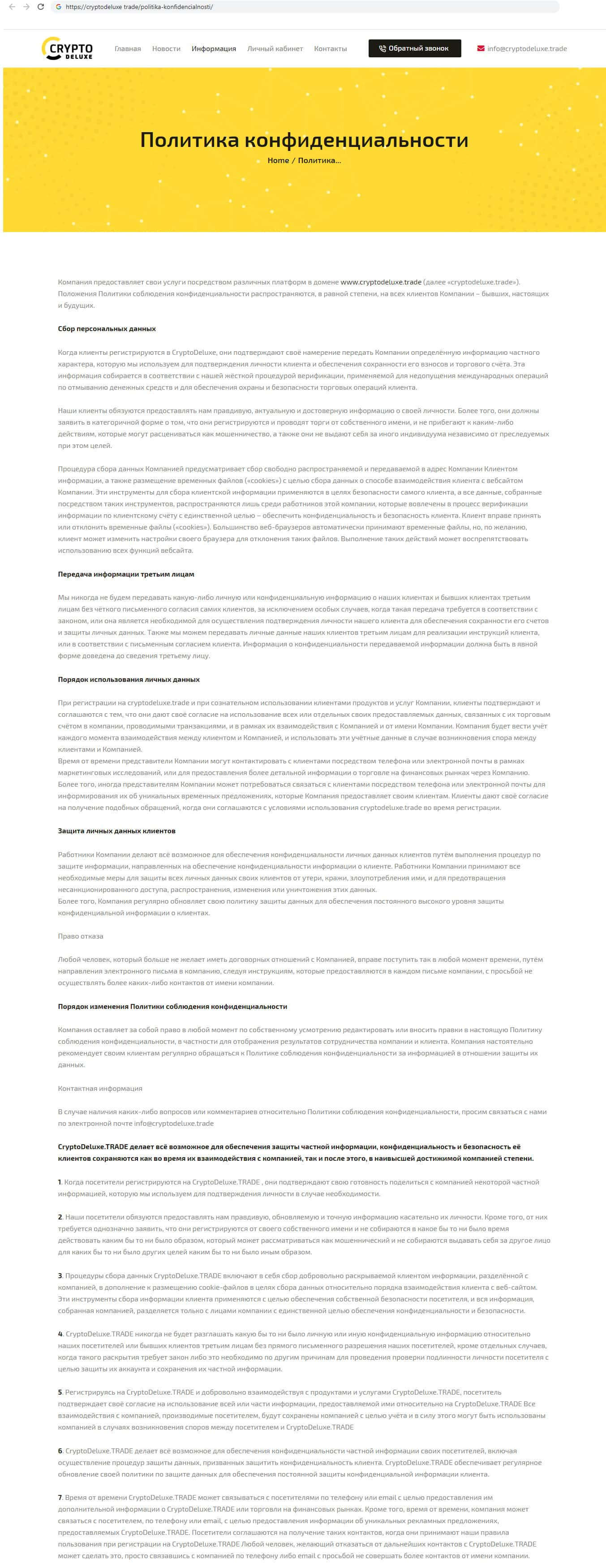 - Политика конфиденциальности жуликов CryptoDeluxe