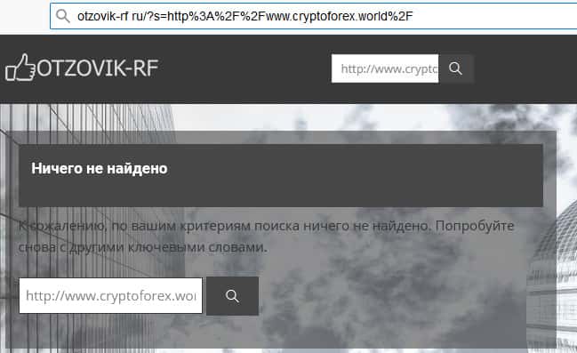 Чтобы вызвать как можно больше доверия у своей аудитории, жулики Крипто Форекс очень хорошо чистили о себе весь негатив в сети. И в этом, к сожалению, приуспели, потому что на нормальных сайтах-отзовиках нельзя найти о них вообще никаких отзывов. Не то что негативных.