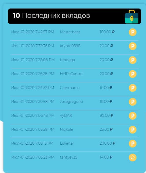 Чтобы привлечь внимание клиентов, мошеннический хайп Crypto Forex решил опубликовать 10 последних вкладов от якобы их клиентов. Суммы варьируются разные, но в основном мелочь от 10 до 100 рублей. На самом деле это обычное вранье, на которое должны клюнуть лохи, которые зашли на их сайт.