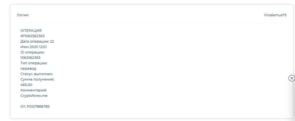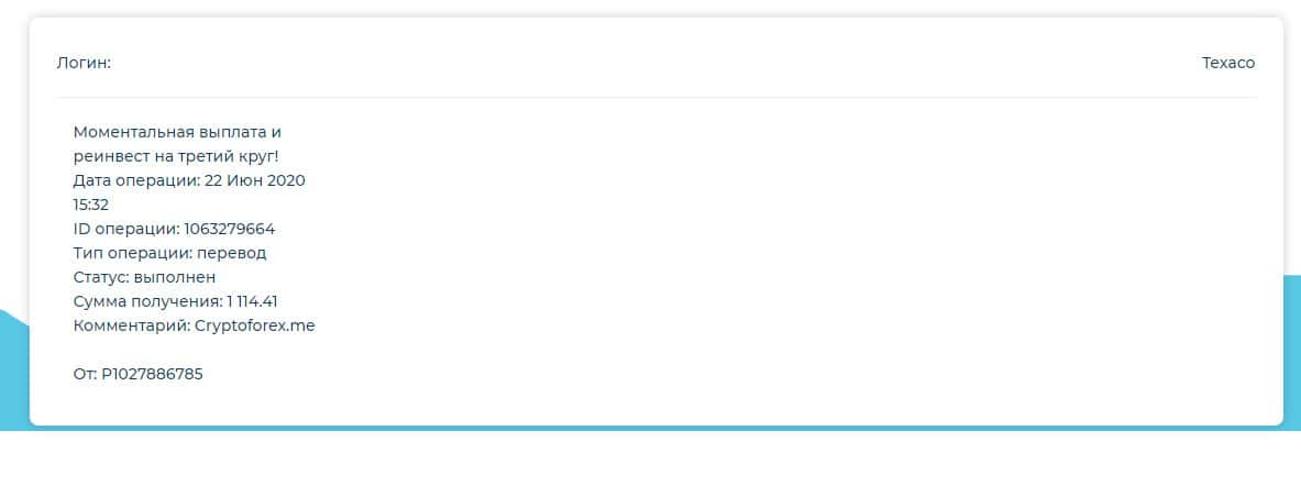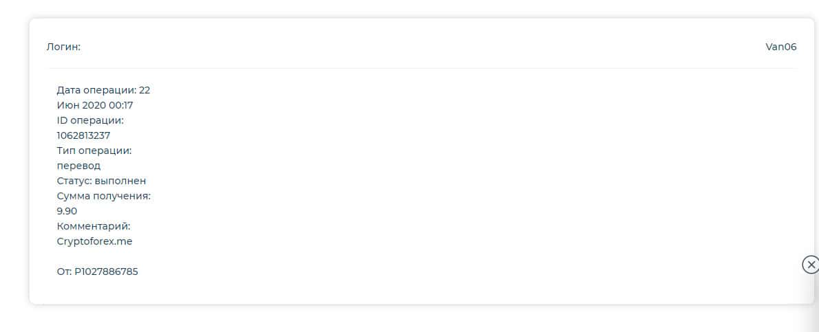 Ну и конечно же приписали мелкую сумму, типа чтобы выглядело все правдоподобно. Шарлатанская организация Crypto Forex показывает информацию якобы от клиента, который получил выплату почти 10 рублей. правда это или нет можно только догадываться, но аферисты с чувством юмора.
