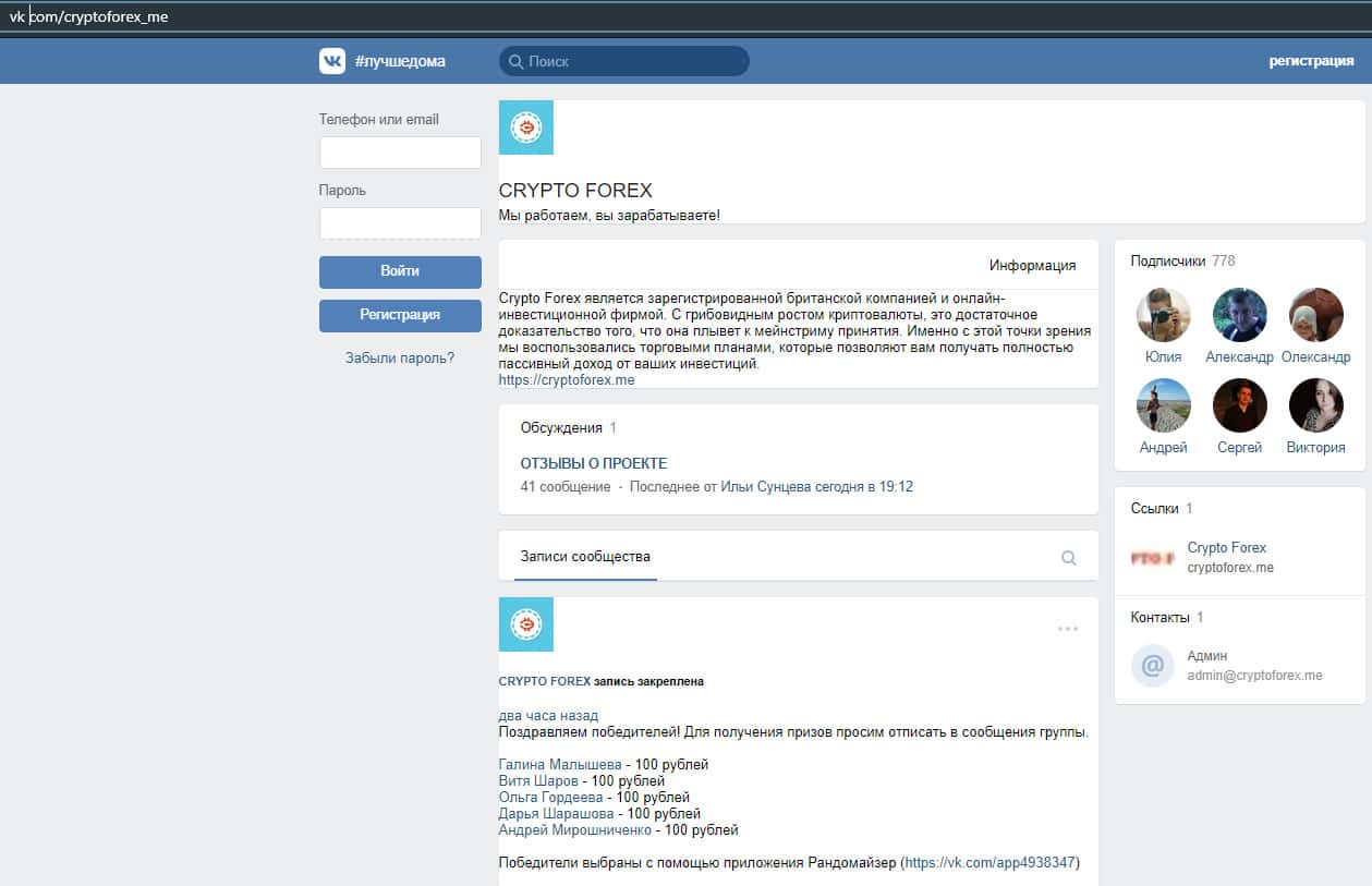 - Деятельность лохотрона Крипто Форекс в социальных сетях