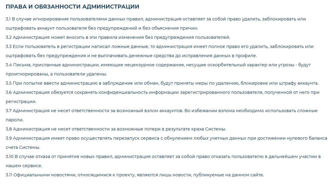 В правах и обязанностях администрации сайта Крипто Форекс, заметьте, а не руководства, основателей и прочих владельцев и управляющих, не несет ответственность за взлом аккаунта клиента, возможные потери в результате краха системы, а также убытков, которые клиенты понесут при сотрудничестве с ними.
