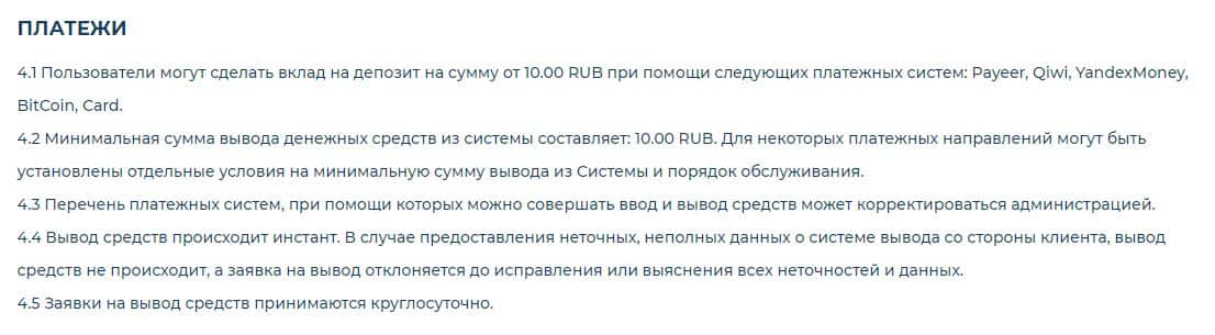 Также раскрыта тема платежей, где лохотронщики Crypto Forex по большей части указывают на пополнения депозита. Если вдруг система не сможет выплатить средства клиенту, то ответственности за это они нести не будут. Так что доказать что-либо, что там ваши деньги, у вас никак не получится.