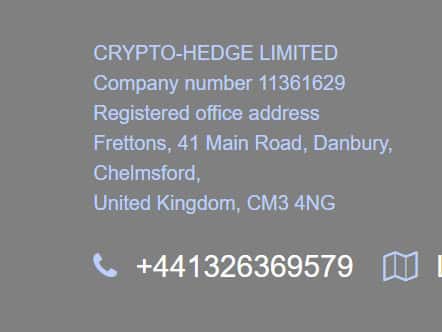 На сайте конторы Crypto-Hedge Ltd имеется британский телефонный номер. Однако, он вряд ли пригодится российским пользователям, если они захотят связаться с компанией.