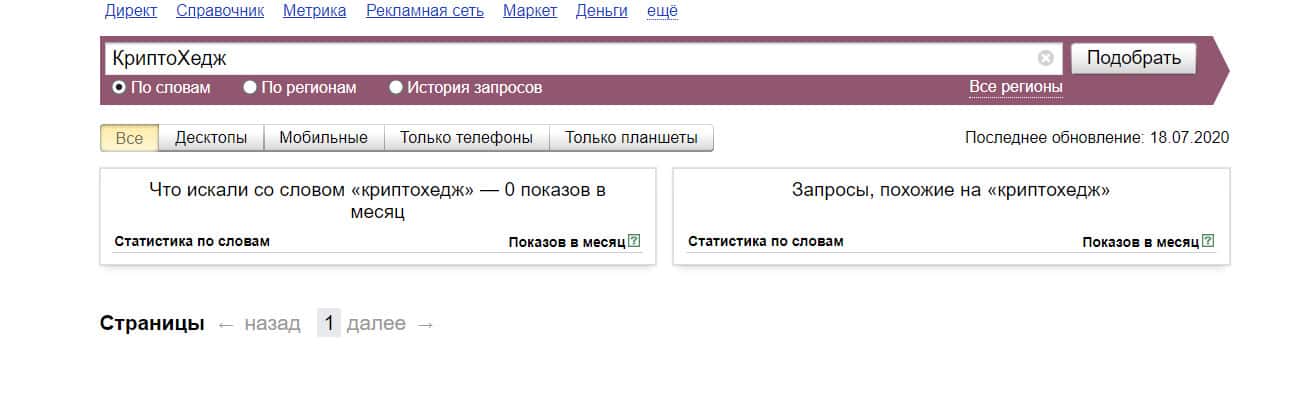Пользователи не искали название бренда "КриптоХедж" на русском языке в системе Яндекс ни разу.