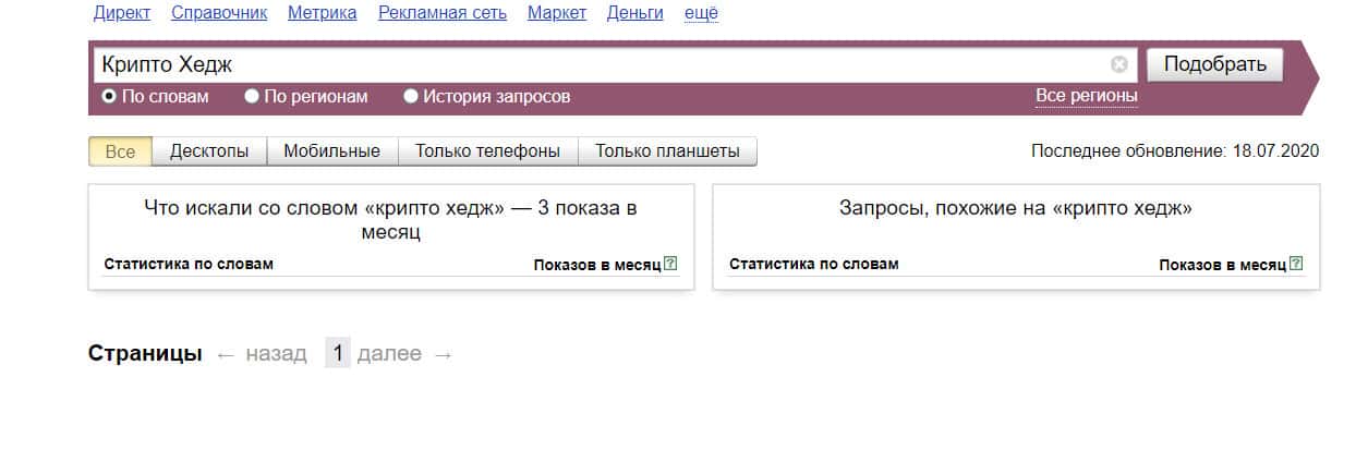 В поисковой системе Яндекс название компании "Крипто Хедж" с пробелами на русском языке пытались найти всего 3 человека.