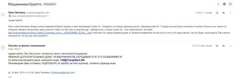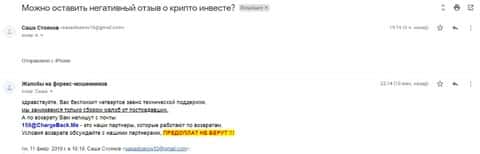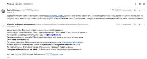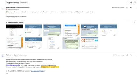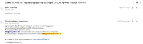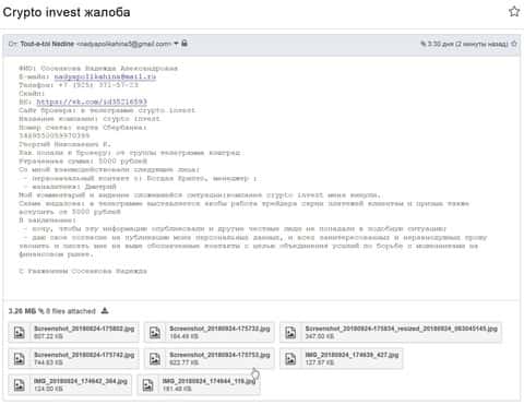 Далее представлено первоначальное письмо, которое пришло к нам от жертвы лохотрона Крипто Инвест.