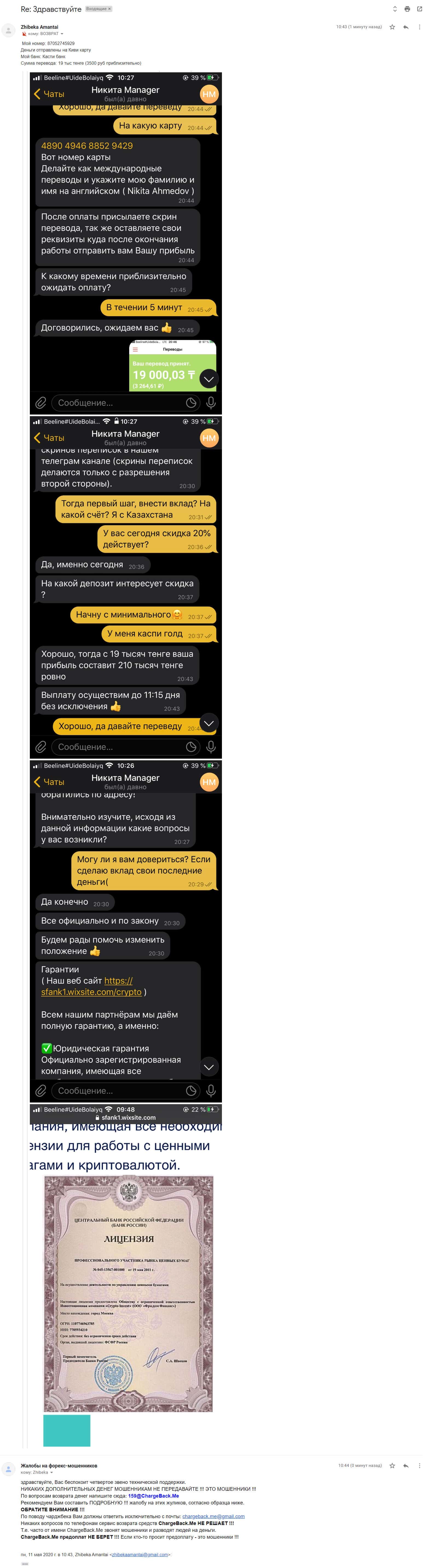 По нашему запросу, автор письма прикрепил в письме скриншоты и фотографии, которые доказывают причастность конторы Крипто Инвест к преступным действиям.