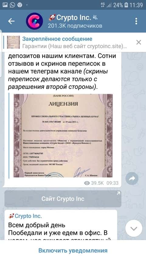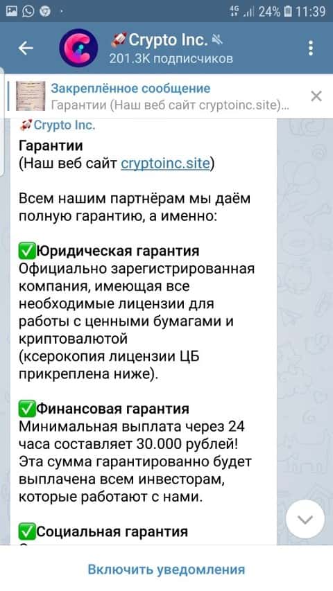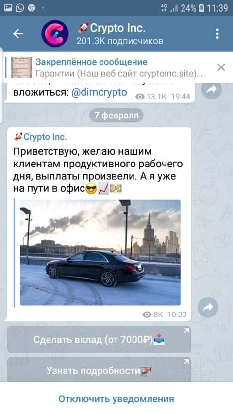 И вот представлена информация от жуликов Крипто Инвест, которая заманивает людей через группу в телеграмм.