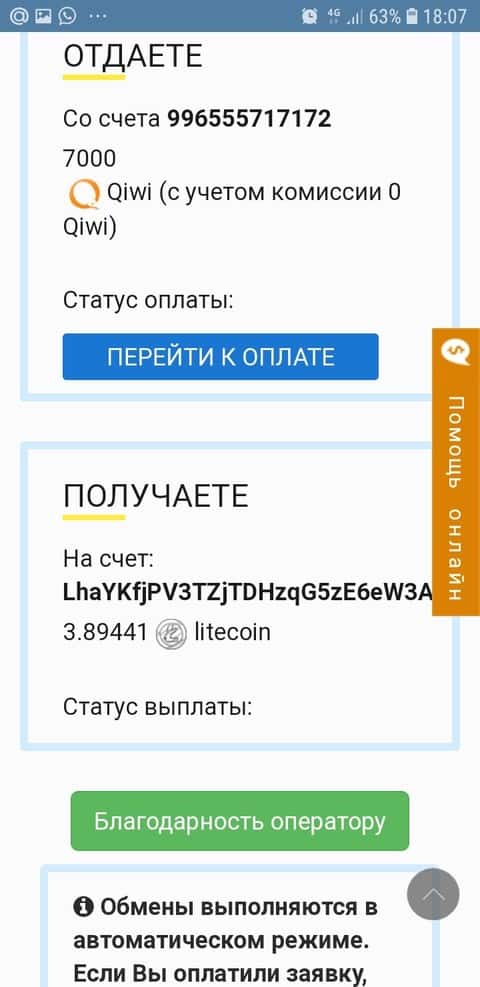 После того как аферист крипто-кухни CrypInvest уломал клиента на внесения денег, человек пошел в онлайн-обменку совершать перевод.