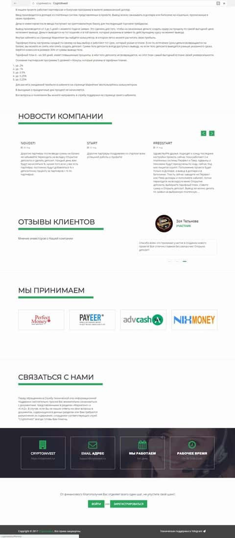 - Интернет-ресурс мошеннической конторы Крипто Инвест
