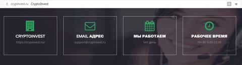 - Контактные данные, представленные на сайте мошеннической конторы Крипто Инвест