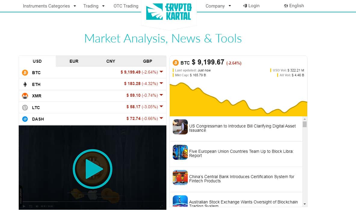 Далее, шарага Crypto Kartal расположила видеообзоры, курсы валют, анализ рынка, новости и инструменты. В принципе, всё просто и прозрачно: стандартная реклама от шулеров о своей брокерской фирме в виде видеоматериалов, интересных функций. Сам по себе сайт выглядит, будто его делали на коленке за пару дней, напихав сюда всяких "плюшек".