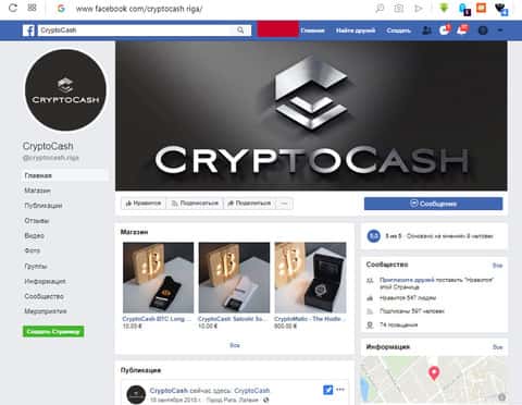 Для большего пиара мошенники придумали себе имя Крипто-посольство Крипто Кэш и разместили аккаунты в социальных сетях. Аккаунт в facebook имеет менее 600 подписчиков. А все новости и публикации представляют рекламу информационных и рекламных акций компании.