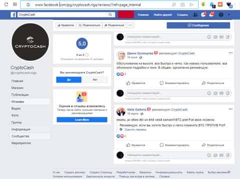 Аккаунт CryptoCash в социальной сети facebookПроплаченные отзывы о деятельности КриптоКэш на фейсбуке