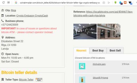 Информация о существовании крипто-посольства в Риге обнародована на сайте коинрадар. Информация носит ознакомительный характер о местонахождении компании, времени её работы, контактном телефоне.