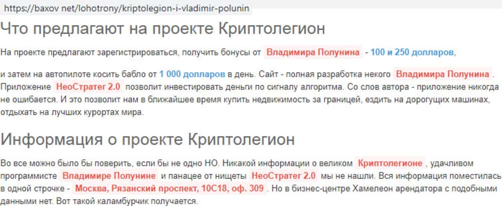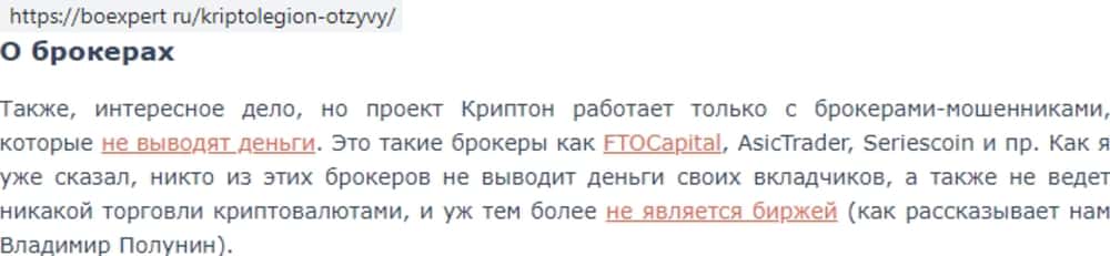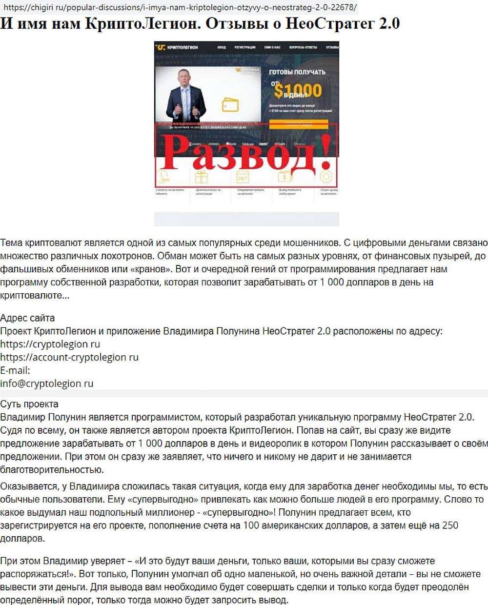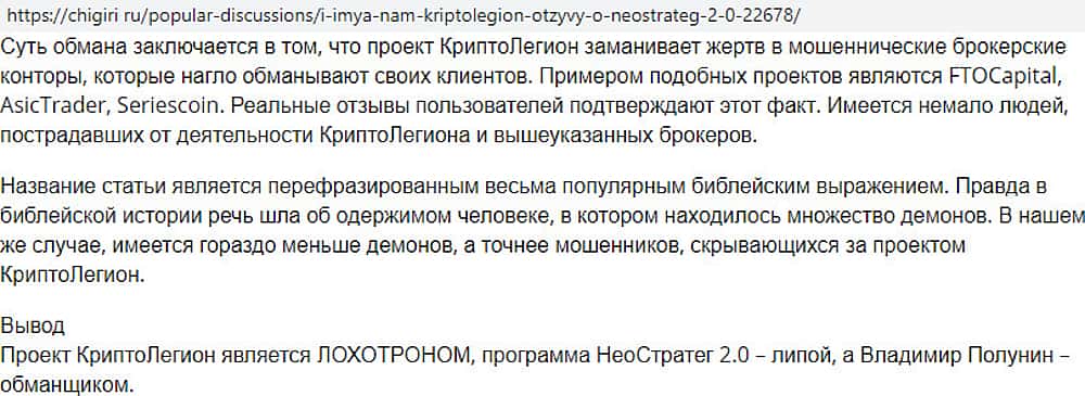 - Почему мало отзывов на липовый проект CryptoLegion?